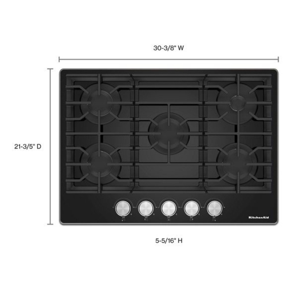 The KitchenAid 30" Gas-on-Glass Cooktop is easy to clean with its glass-top surface. Five powerful burners, including a central 18K BTU burner, allows you to cook like a pro. Continuous cast-iron grates allow for smooth movement of cookware between burners.